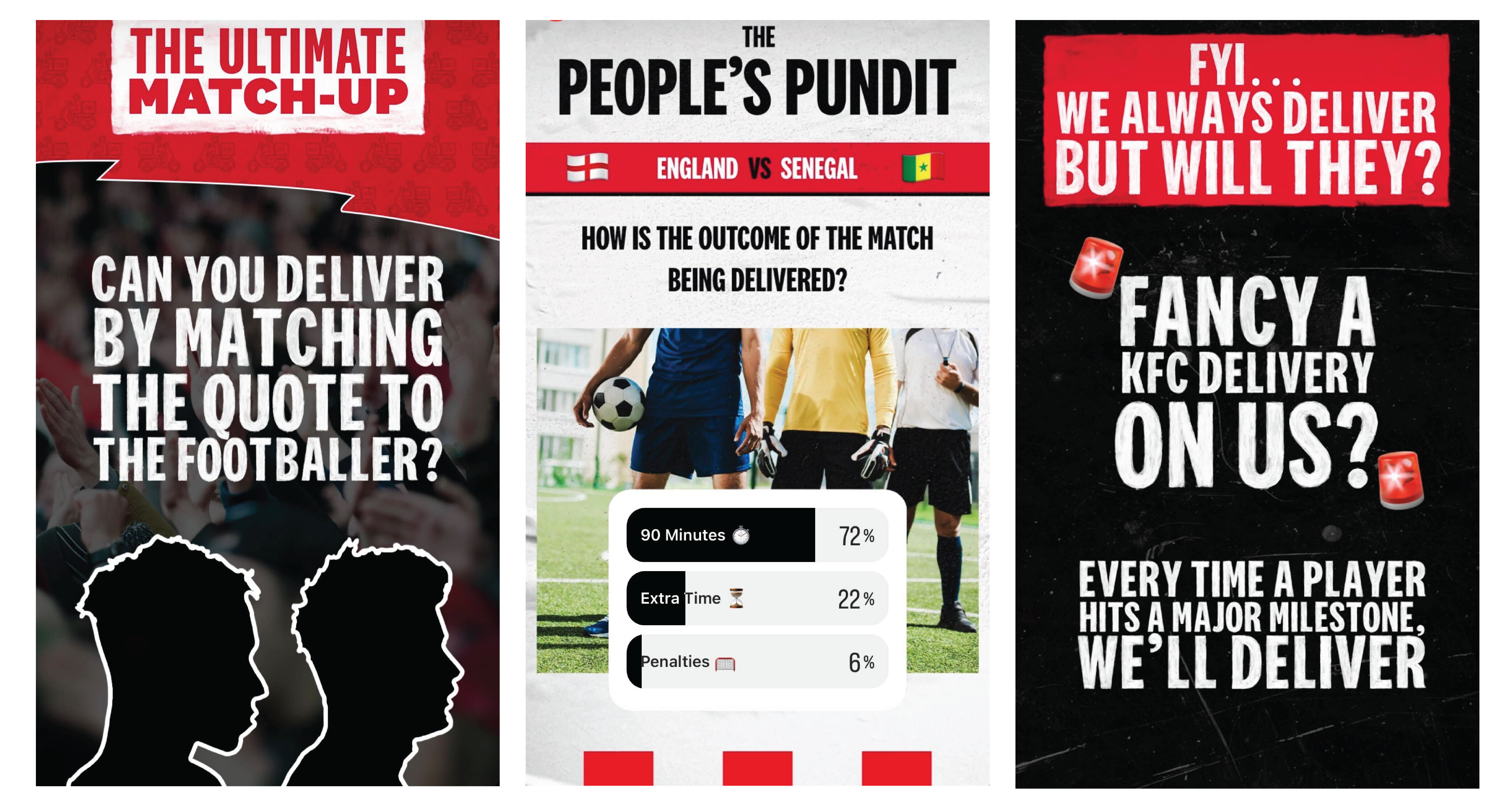 For our World Cup campaign 2022, KFC challenged us to use the power of reactive social. We set our sights on driving modernity and consideration by aligning KFC Delivery with key in-game, sporting and cultural moments as they happened throughout the tournament.