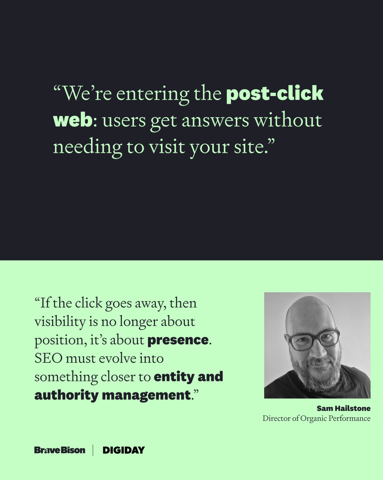 “We’re entering the post-click web: users get answers without needing to visit your site. If the click goes away, then visibility is no longer about position, it’s about presence. SEO must evolve into something closer to entity and authority management.”
